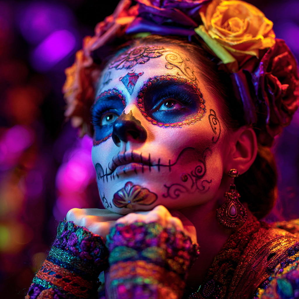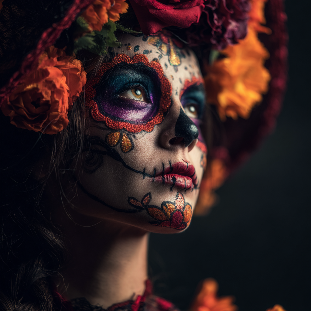 ✅ Cosmétique inspirée d’une tradition vivante : un maquillage inspiré de la Catrina, figure iconique du Día de Muertos