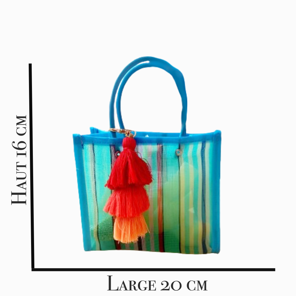 Nos sacs à courses sont des créations artisanales mexicaines, tissées avec de la maille plastique recyclée. Leur conception robuste garantit une durabilité exceptionnelle pour vos achats. Avec une variété de couleurs vives et un porte-clés intégré, ils ajoutent une touche de style et de praticité à vos courses quotidiennes.