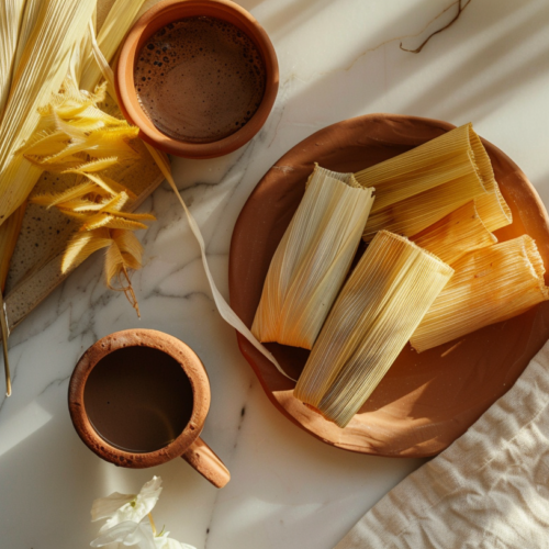 - Servez les tamales bien chauds avec une tasse de chocolat mexicain ou une boisson épicée